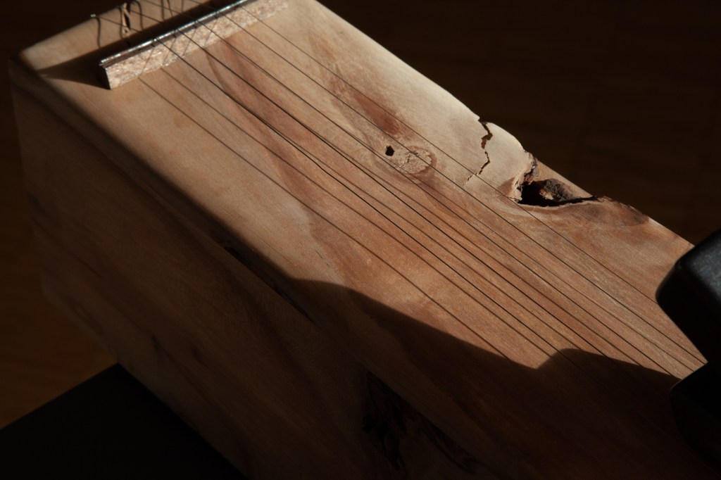 Two of the sound sculptures are also string instruments built from the pear tree wood.