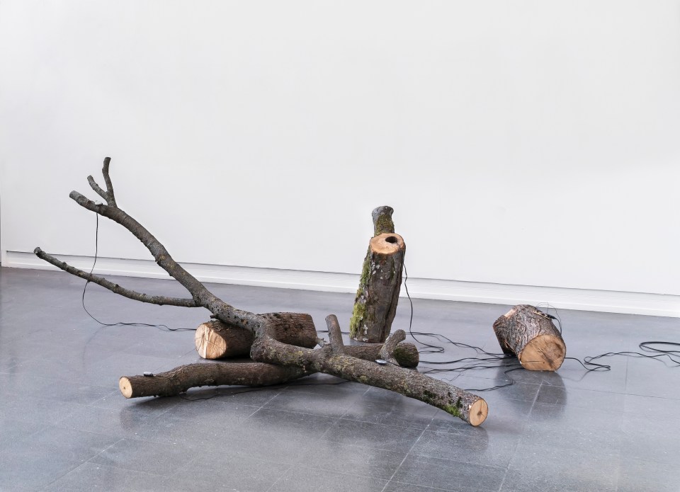 Treverk is an ongoing series of installations based on audio recordings of minuscule movements in trees. Changes in the electrical conductivity in two of the installations logs controls the sound played from the exhibitions other trees.
