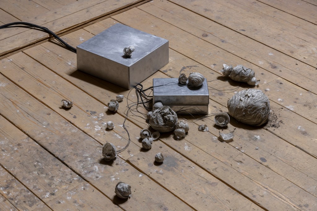 The recordings were made using small contact microphones attached to the nests in their original locations. These microphones captured the ambient sounds as small vibrations on the nests’ surfaces. Now, the contact microphones remain in the same positions but function as small speakers.