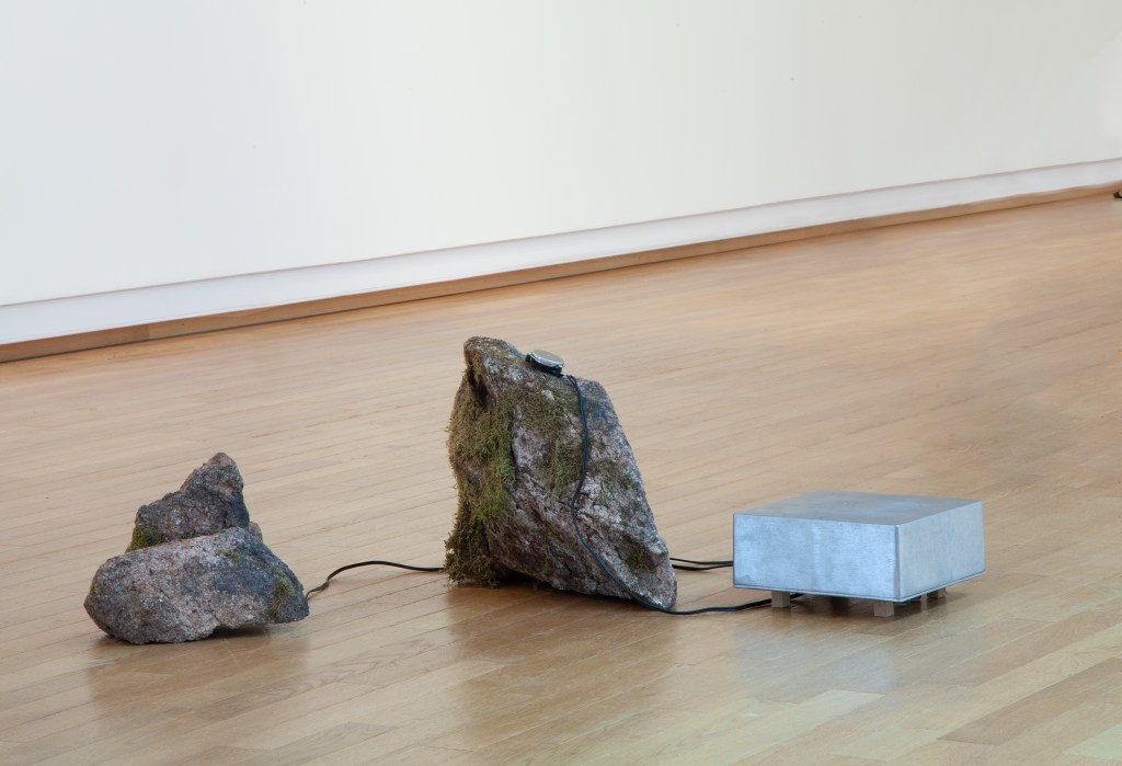 The work documents the complexity of the sound information found in nature, based on audio recordings of minuscule movements in the forest floor, root systems, trees and a marsh. Bioelectrical signals from the installations materials controls and shapes the sound in the gallery space.